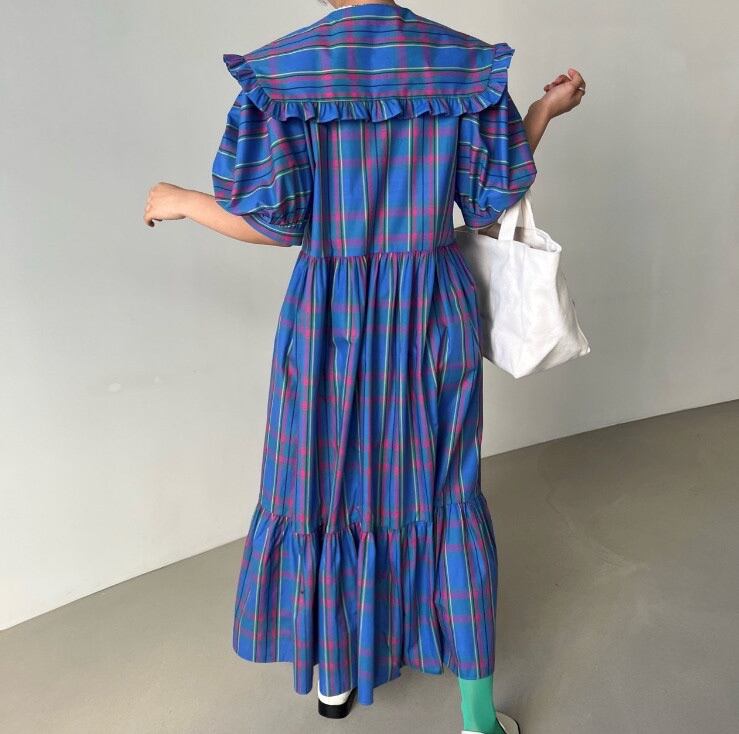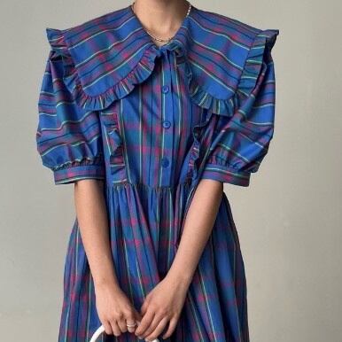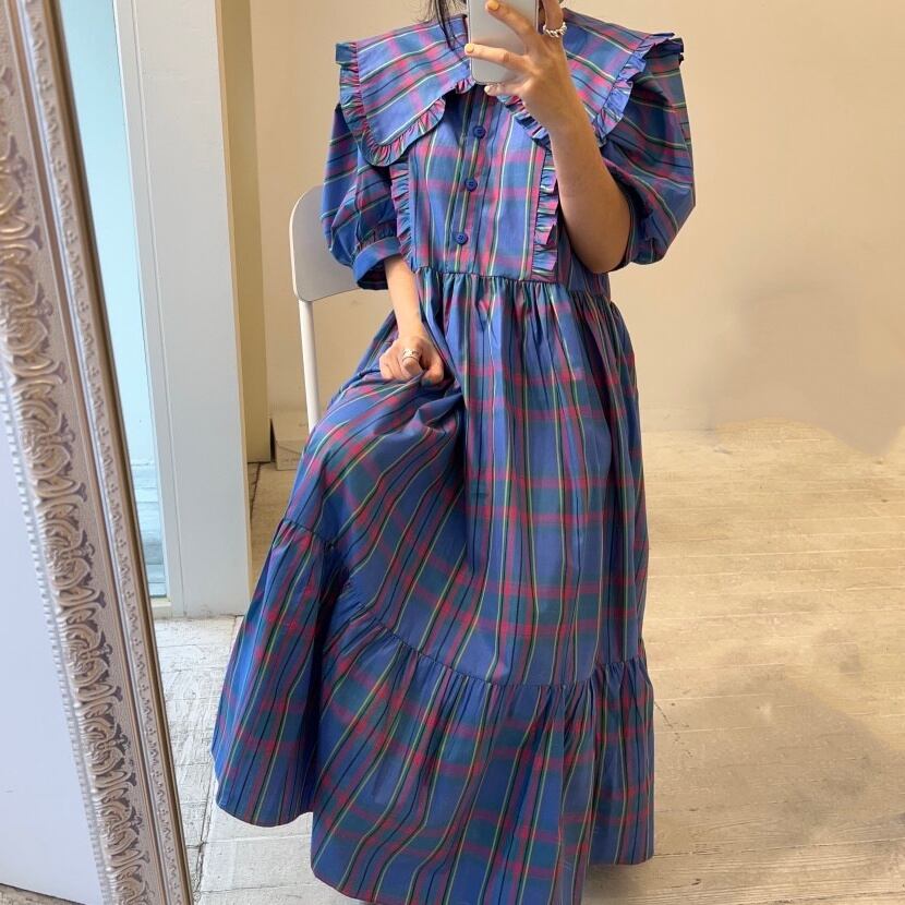 Large collar check dress 2-463