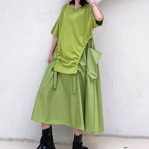 ボディラインを拾わないゆったりワンピースです。