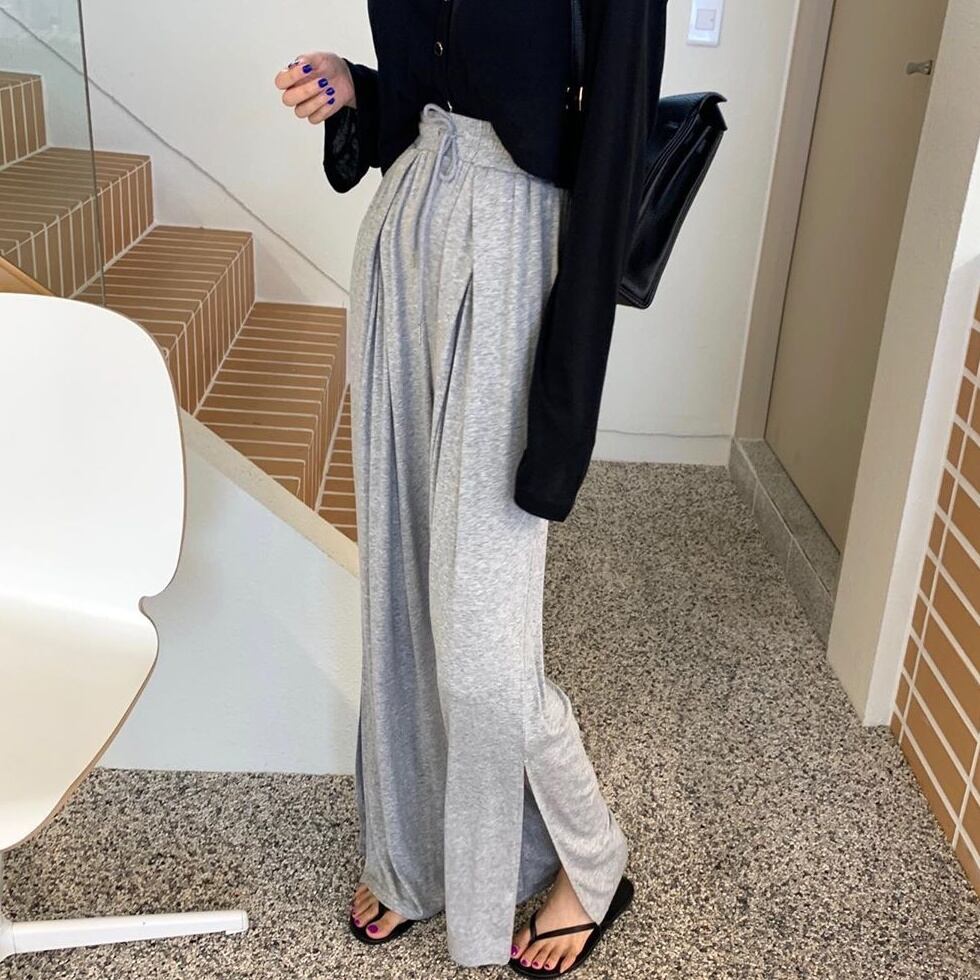 柔らかい素材でドレープ状のプリーツが入った立体感のある『drape wide leg pants』