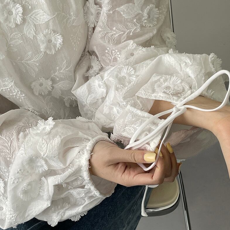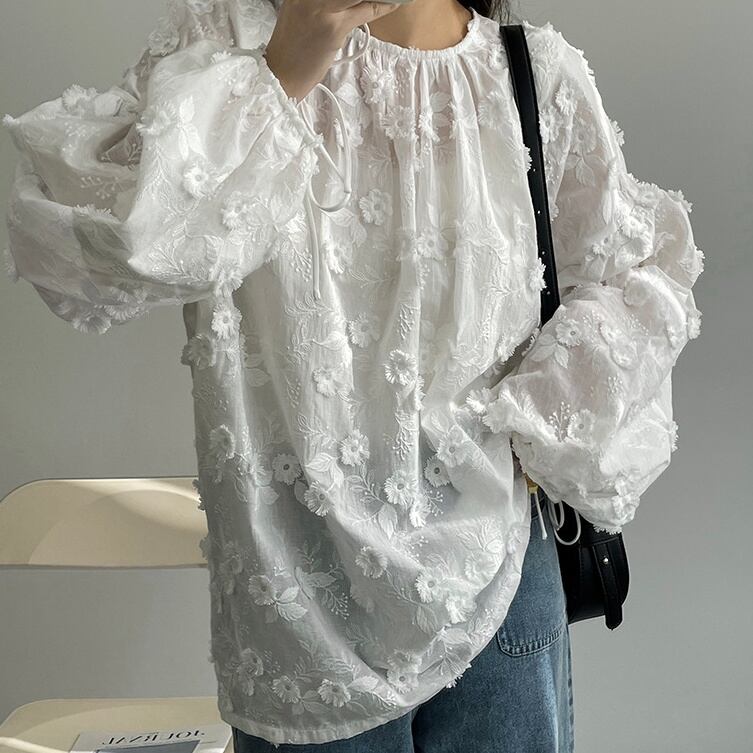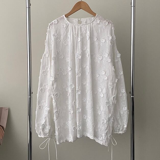 薄手の綿素材を使用し、お花の刺繡で華やかさをプラスした妖精のようなブラウス。
