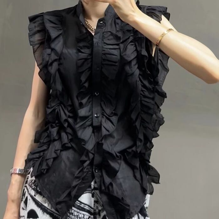 フリルデザインが女性らしさを強調する涼しげなサマーアイテム。