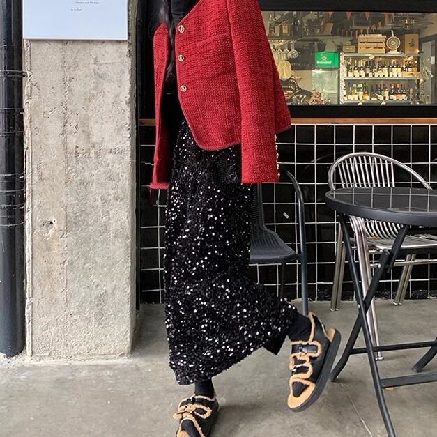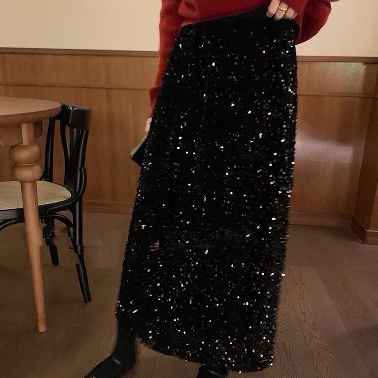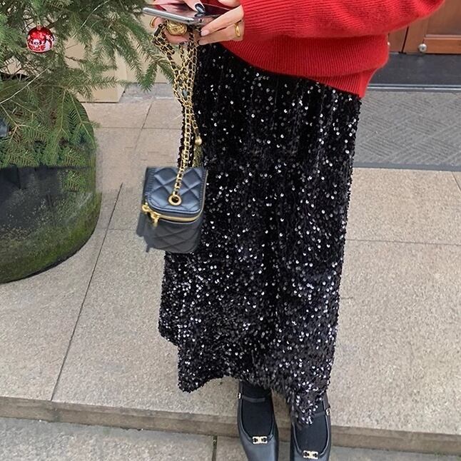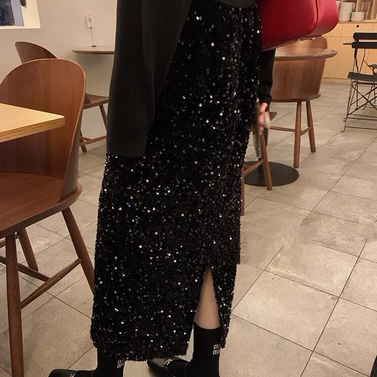 華やかな輝きで周りの目を釘付けにするsequin skirt。