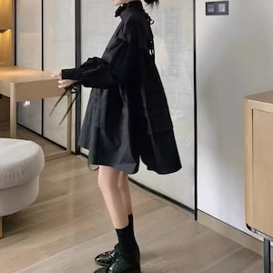 一枚でコーディネートが完成するランタンスリーブシャツ。