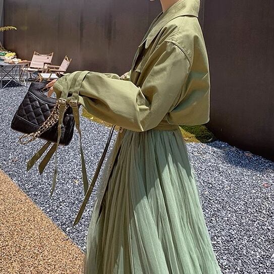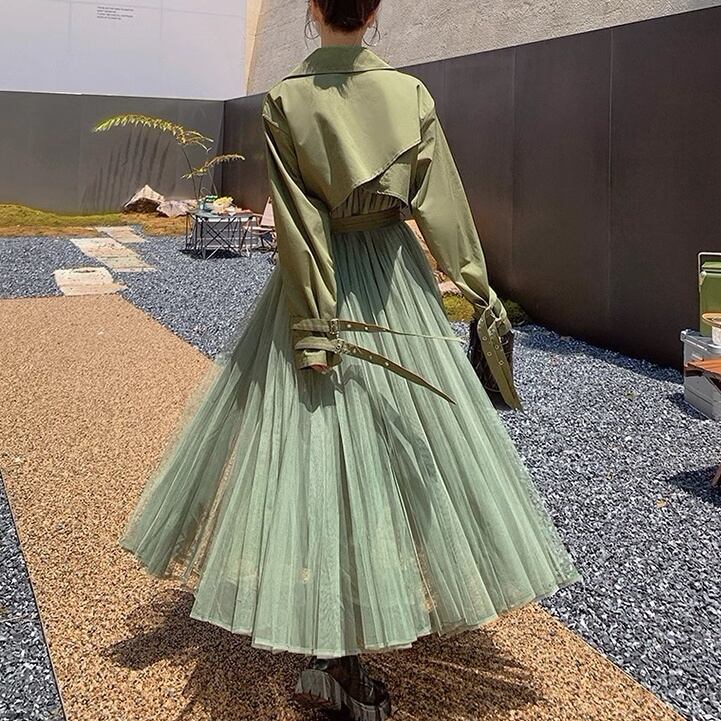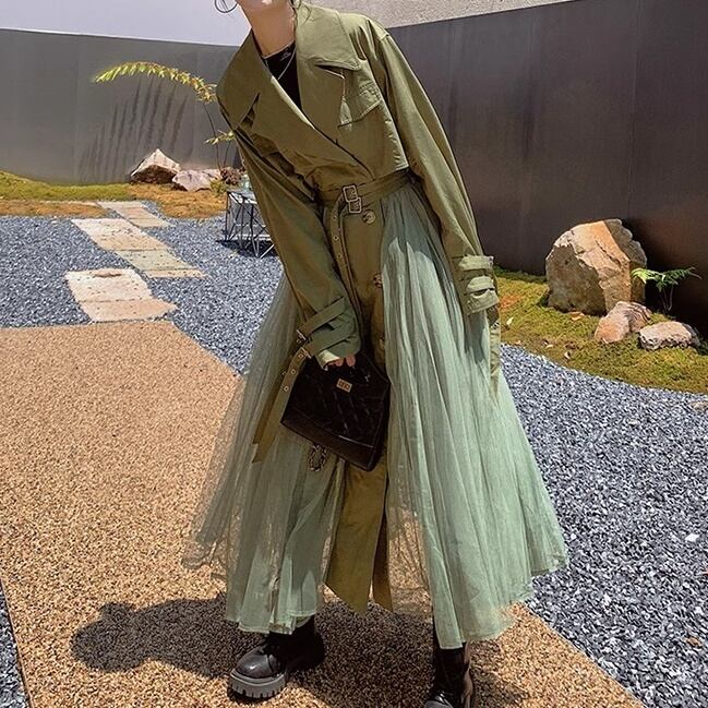 エレガントかつモダンな雰囲気漂うmesh design long coat。
