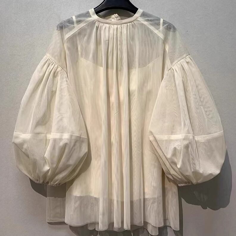 女性らしさと華やかさを引き立てるパフスリーブシアーシャツ。