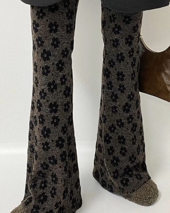 レトロなテイストが漂うエラスティックフレアパンツ。
