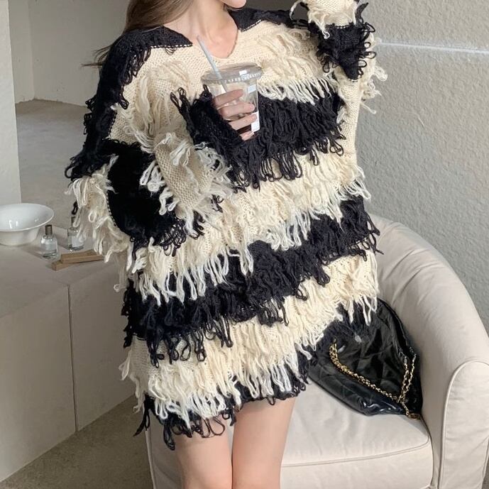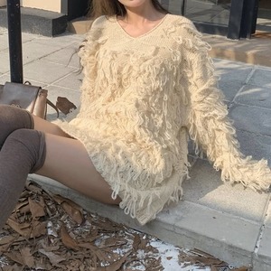 フリンジの長め丈のデザインでゆったり着こなせていただけます。